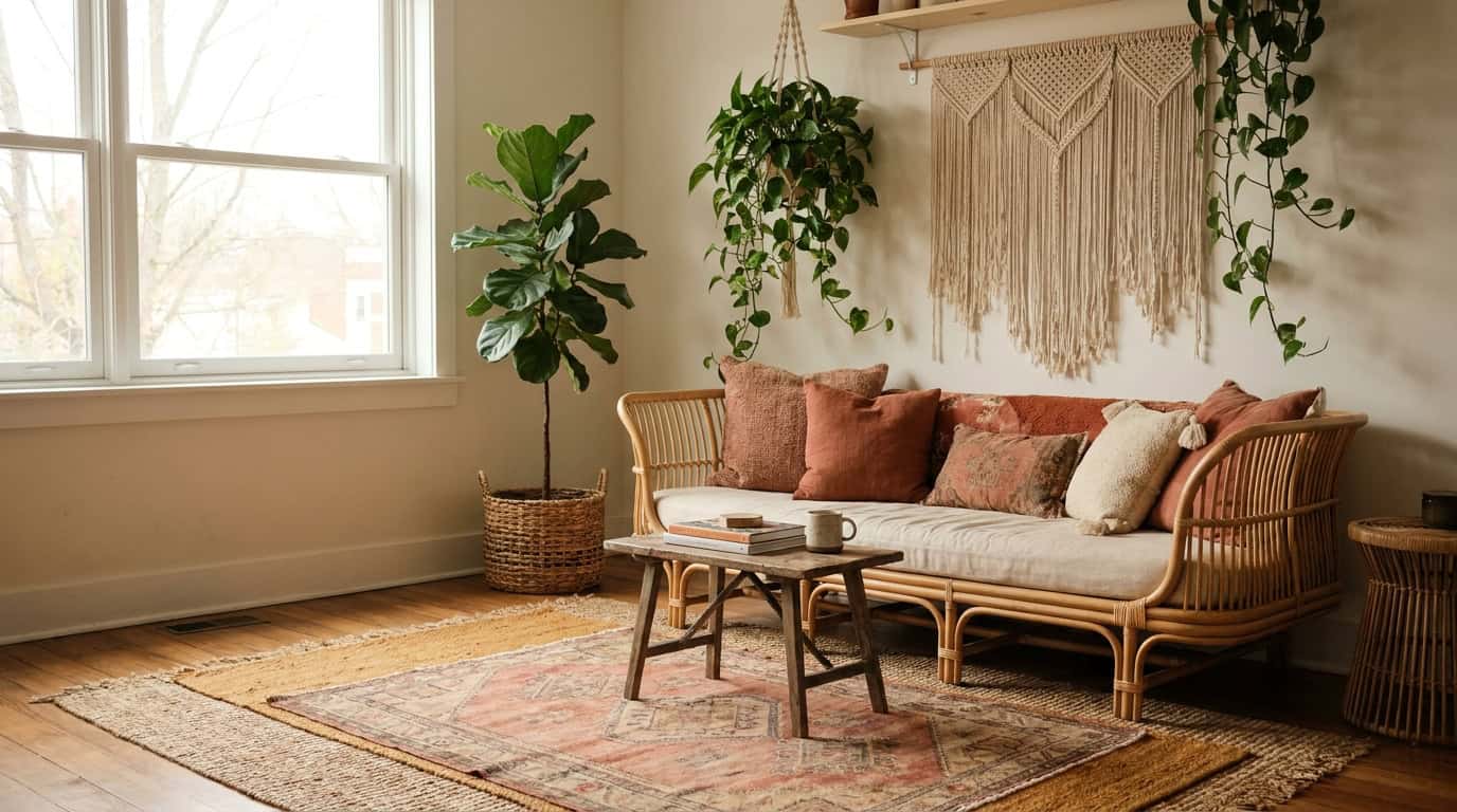 Boho layering looks effortless in photos. In real rooms, it often ends up looking cluttered, busy, or just plain random. The difference between styled and chaotic comes down to a few specific techniques most guides skip entirely.
